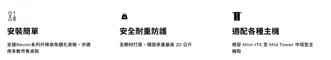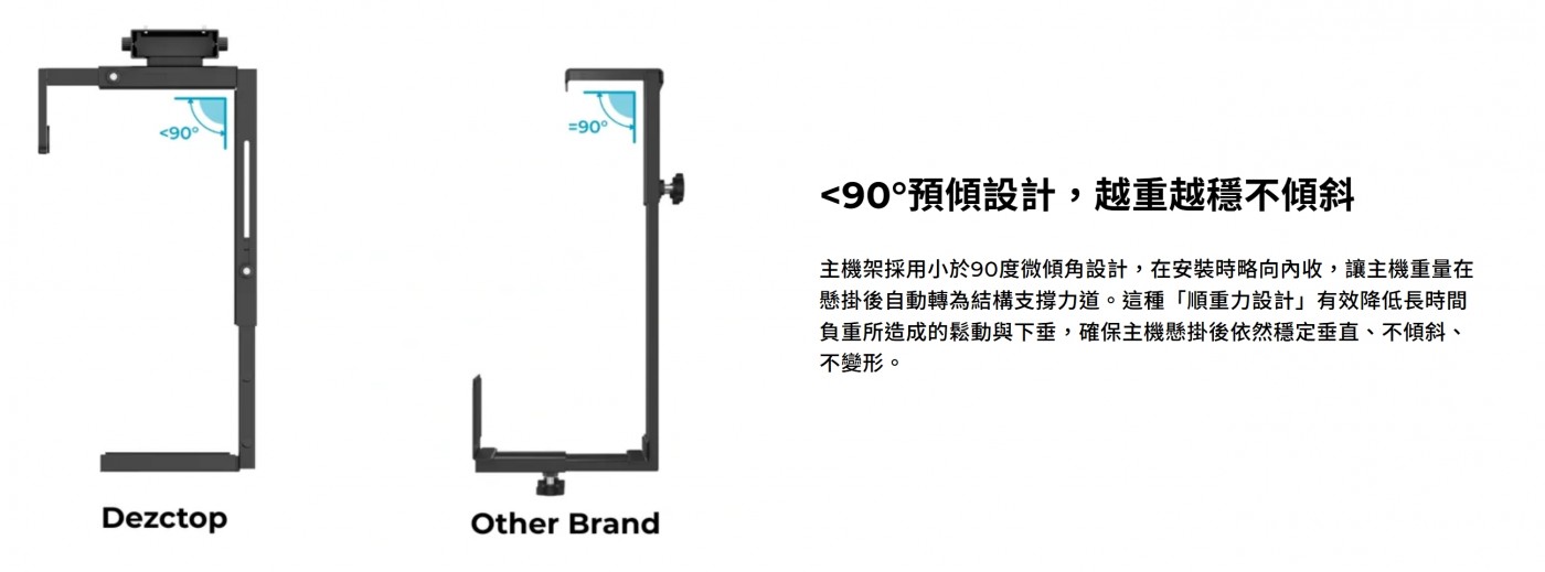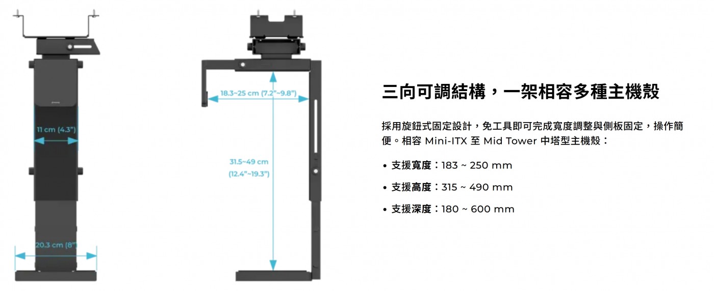 +建議使用厚度至少 18mm 的桌面,以承載電腦重量並確保穩固安裝。