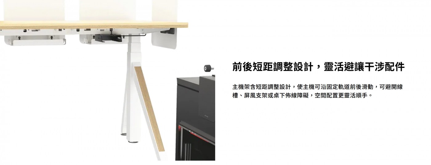 +調整桌面高度時,請確保電腦支架不接觸地面或其他配件。