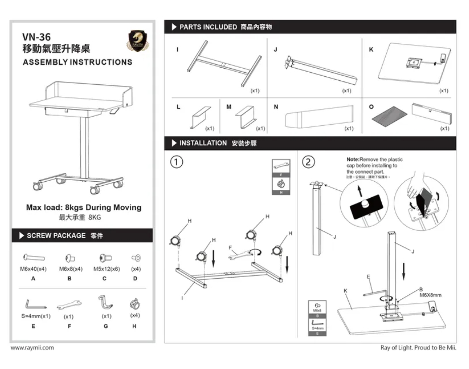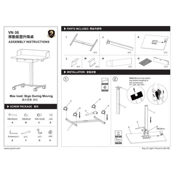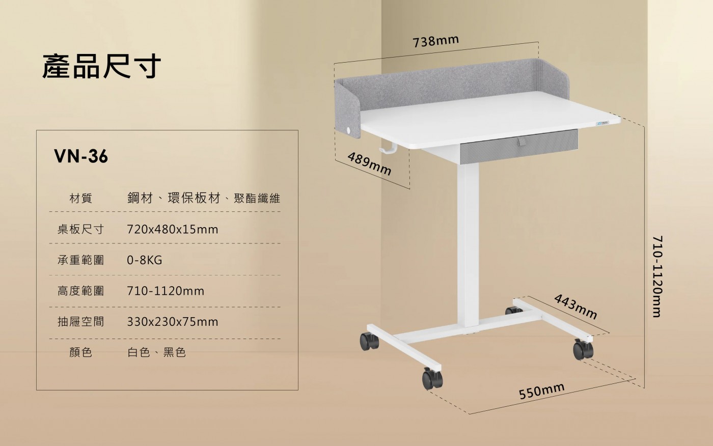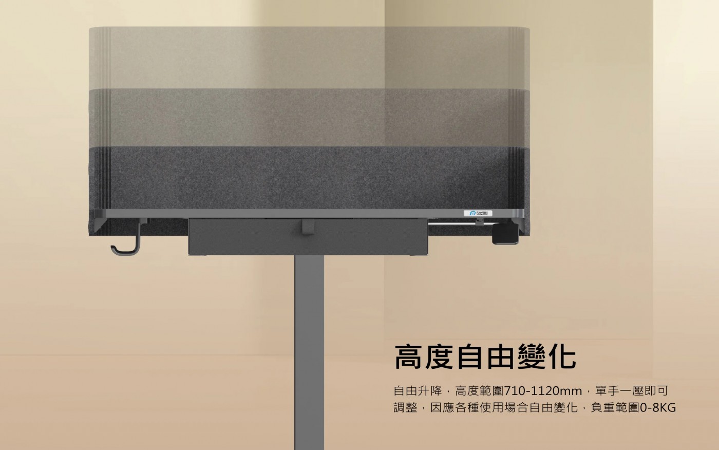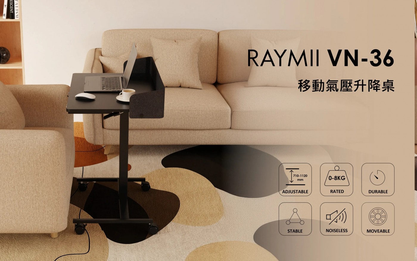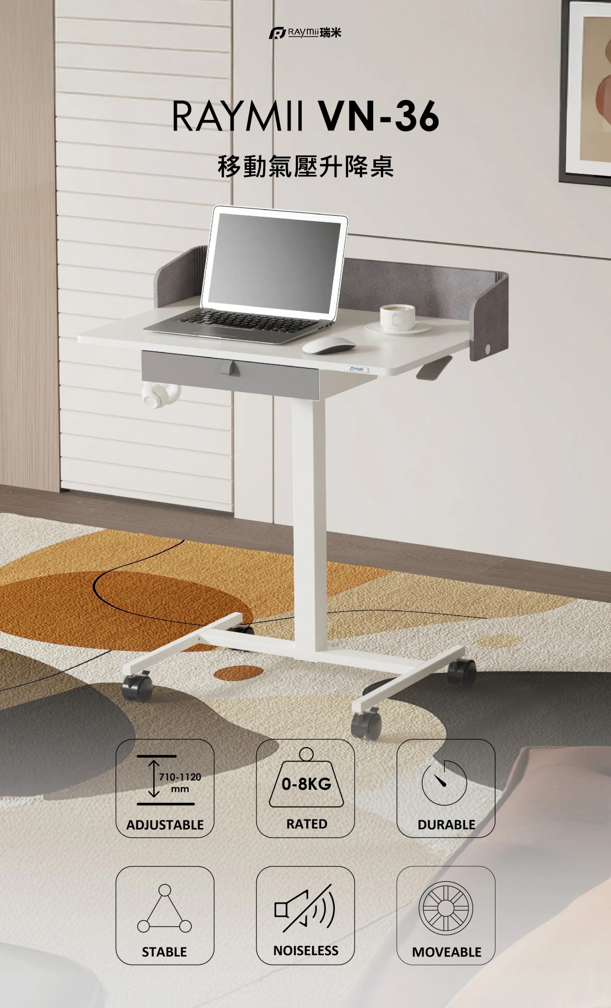 【瑞米 Raymii VN-36 移動氣壓式升降桌~帶抽屜/站立辦公桌/電腦桌/學習桌 】